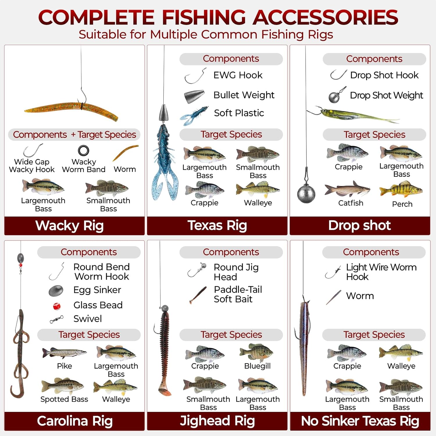 - Build 19+ Proven Rigs With Confidence: This all-in-one kit includes hooks, swivels, sinker stops, bobber stoppers, and more, allowing anglers to create over 19 of the most effective freshwater rigs like Texas Rig, Carolina Rig, Wacky Rig, and Drop Shot. Perfect for targeting bass, trout, crappie, and other species in any fishing scenario